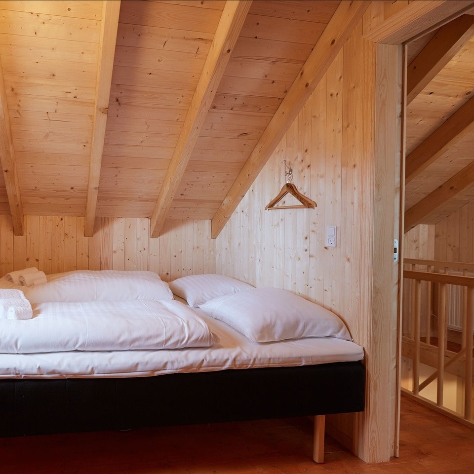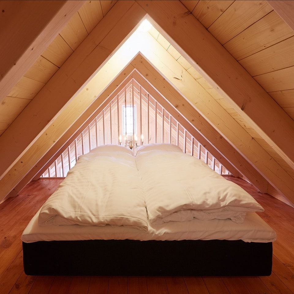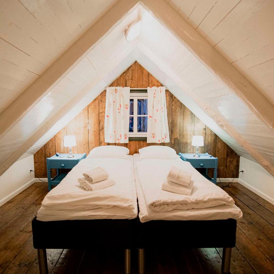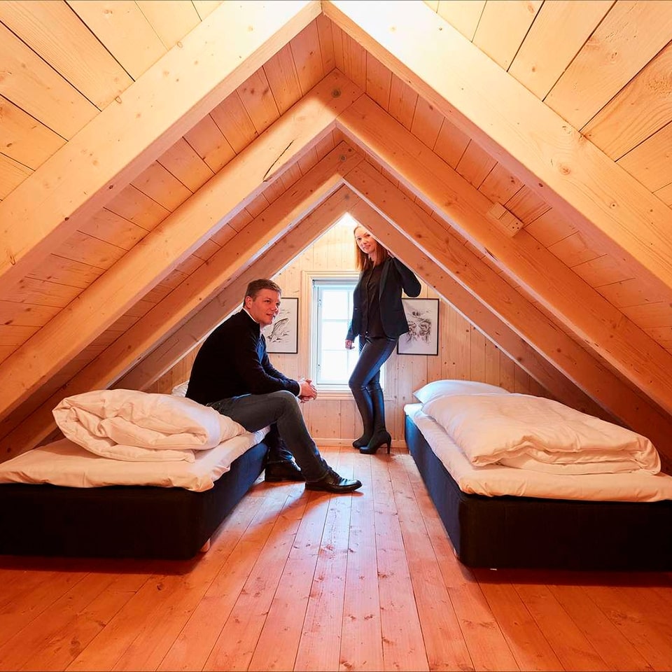 Loftshædd: Tvey tveymanskømur og trappurúm við tveymanssovisofu.