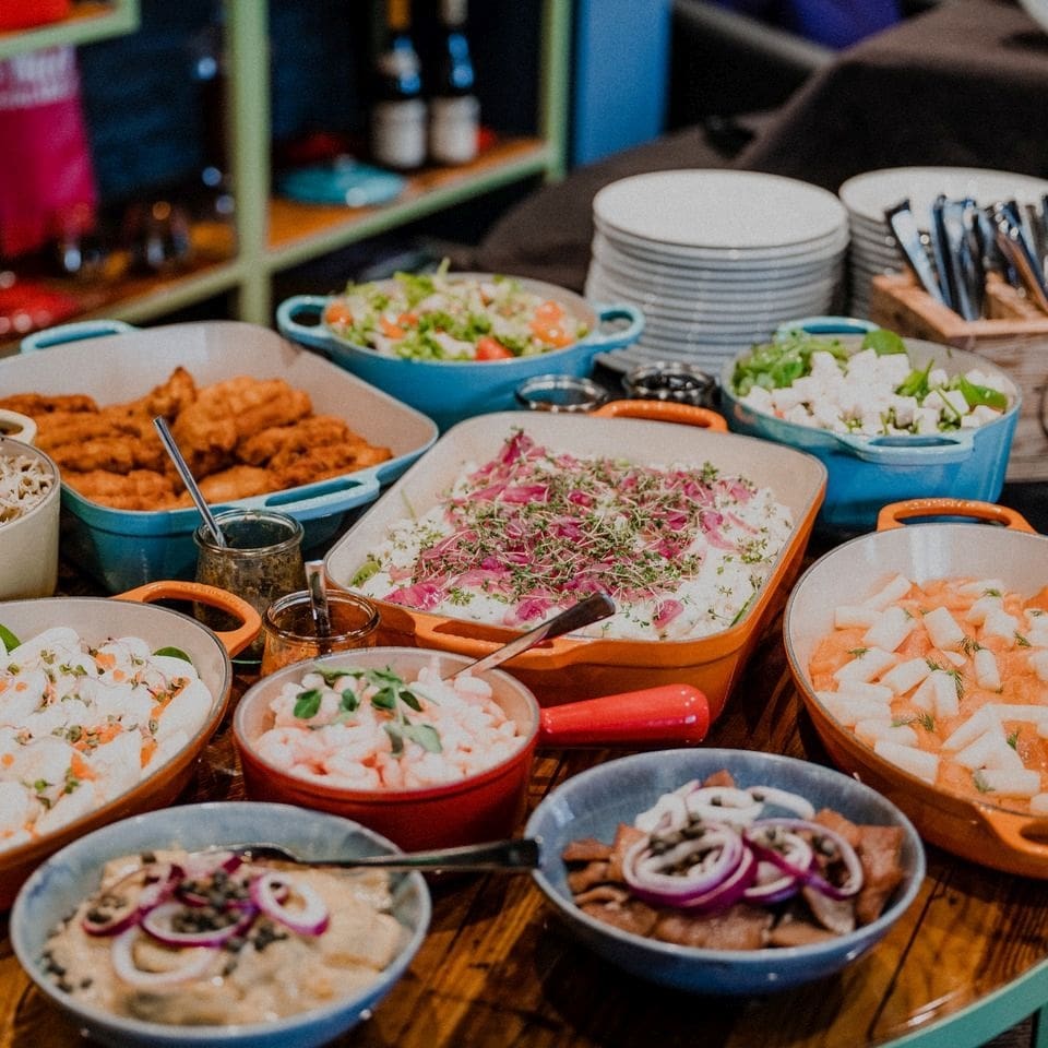 Her fært tú lættar rættir, eitt nú club sandwich, salat, køkuúrval og ikki at gloyma okkara tiltiknu Kasparbeyglu.