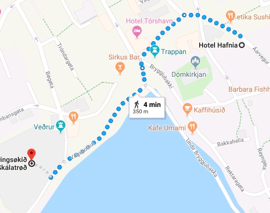 Kortið til høgru vísir leiðina til Skálatrøð.