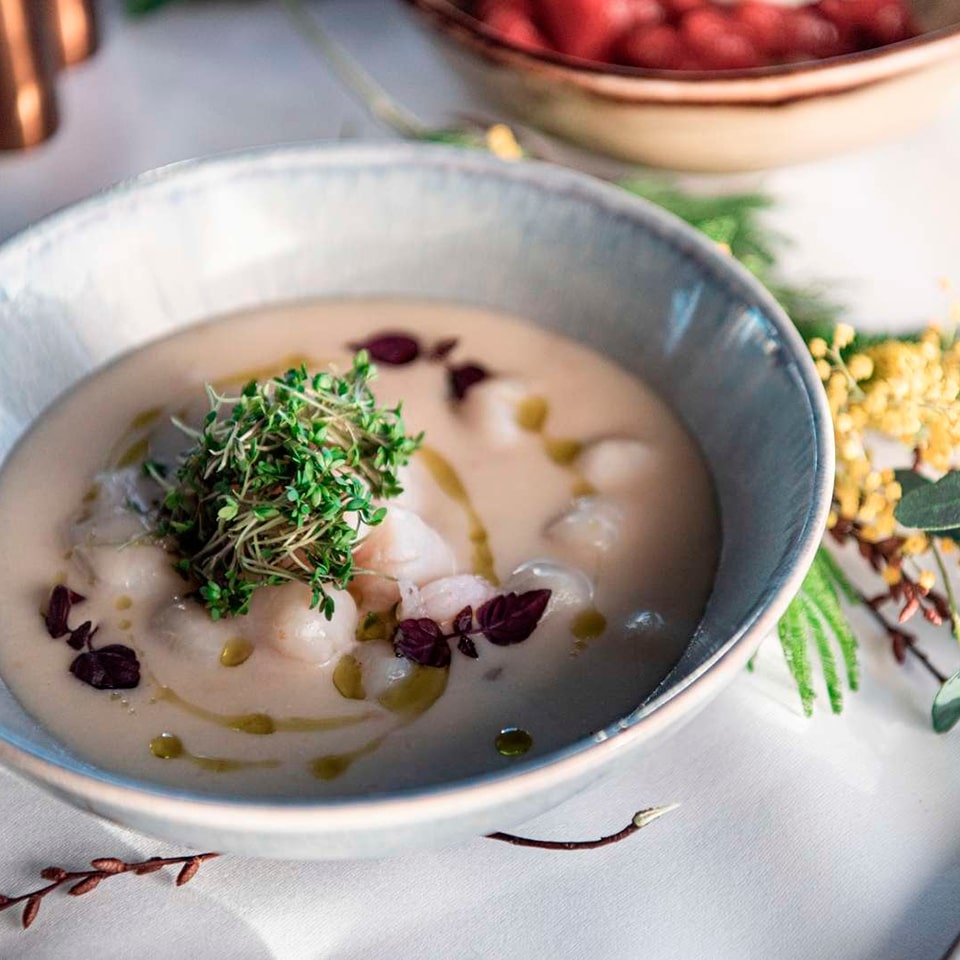 · Hummarasuppa við súrróma og urtaolju